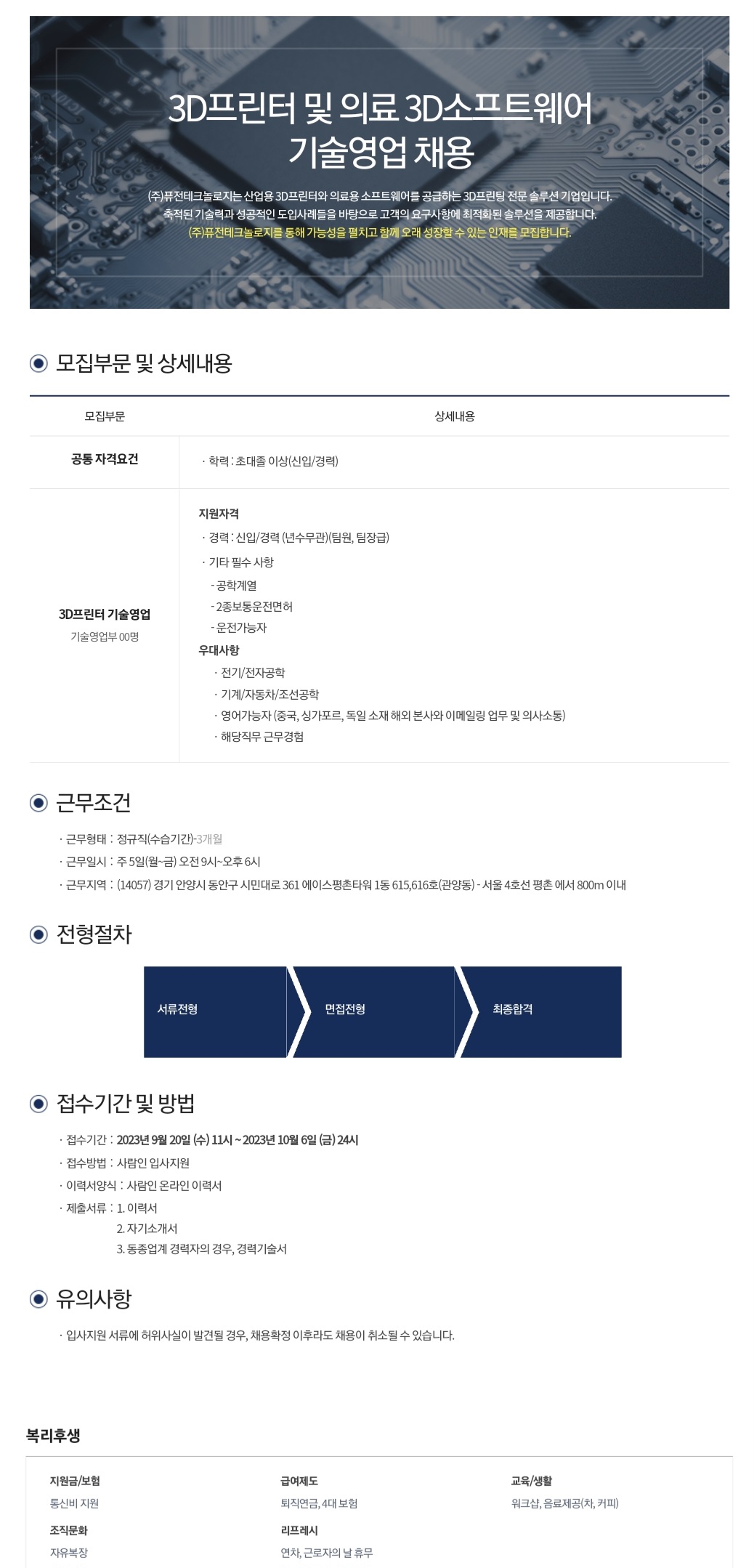 3D프린터 및 의료 3D소프트웨어 기술영업 채용